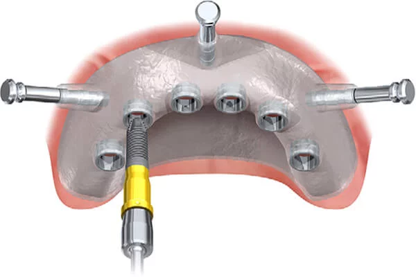Implantologjia me guidë të kompjuterizuar është teknika më e përparuar e implantologjisë moderne botërore. Pasi mblidhen të dhënat imazherike nga skaneri 3D CBCT, mund të simulohet në kompjuter ndërhyrja e vendosjes së implanteve dhe të planifikohet me preçizion maksimal pozicionimi dhe inklinimi i tyre për çdo pacient.